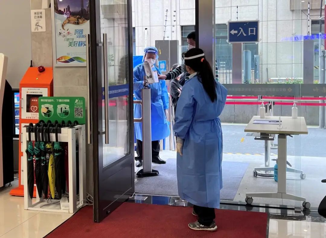 为加强疫情预警和监测,提高疫情防控精准性、有效性,曹家渡街道社区事务受理服务中心在入口处设数字哨兵,严格落实“应扫尽扫 逢扫必验”的要求,中心安排专人查验办事居民的口罩佩戴、绿色随申码,体温测量,持72小时内核酸阴性报告者方可进入办事大厅。