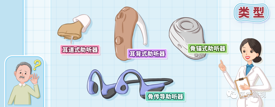 助听器主要有两大类,第一大类就是气导助听器,主要包括放在耳朵眼里的耳道式助听器,以及挂在耳后的耳背式助听器。气导助听器要求患者存在一定听力,而且耳道能够接收声音信号。