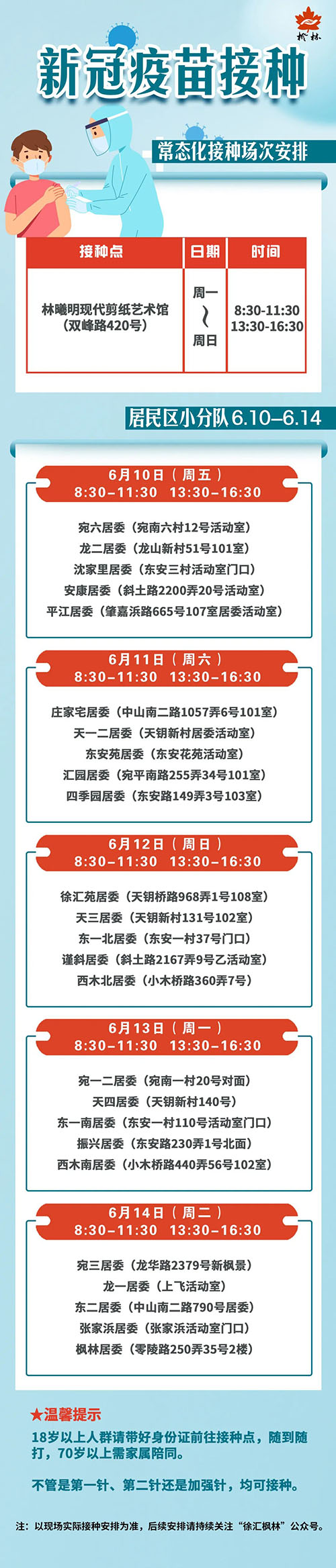 除了设置常态化接种点,目前,枫林街道正在加快布局居民区接种点位,把“苗苗”送到居民家门口!