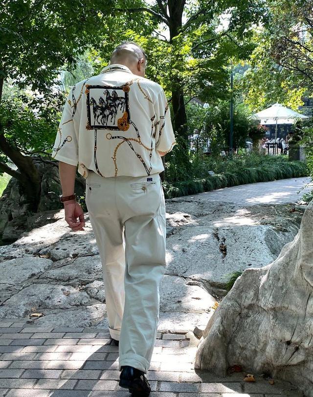衬衫在老年男性的穿搭中出镜频率还是蛮高的,但大多数人为了保守起见,都会选择纯色系衬衫,例如白色、黑色等。