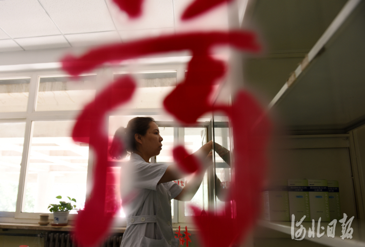 2022年6月17日,在河北省张家口市宣化区柳颐园老年公寓,医务人员为老人配药。
