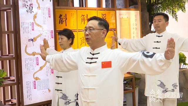 刘安兵改良并推出了“止观养生八法”“疏肝名目导引功”等适合老年人的太极拳新招式:“第一个动作是压手指,主动、被动来拉,压一下我们手上的六条经脉都能拉到,十指连心,对心脏也有好处;第二个动作是支撑、扩胸,把胸腔打开,把气血通过经络达到手指 末梢循环;第三个动作通过转腰,把腰颈活动开。”