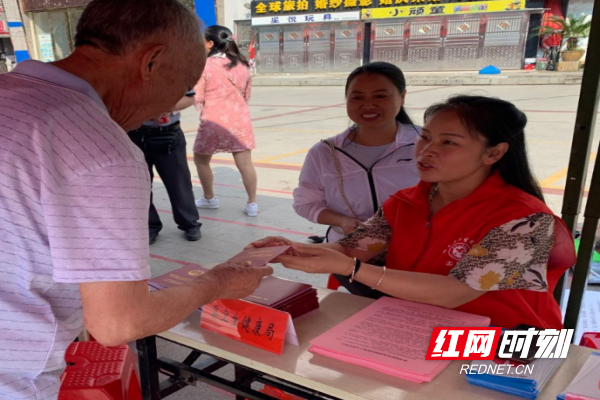 桂东县卫健局工作人员进社区宣传预防养老诈骗工作。
