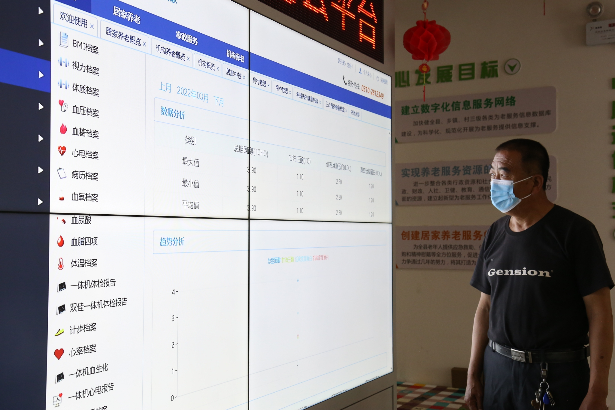 河北省馆陶县一家养老机构的工作人员通过智慧平台查看相关数据。(受访者供图)