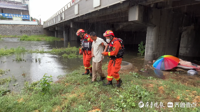 强降雨导致河水上涨老人被困桥下!烟台消防紧急救援