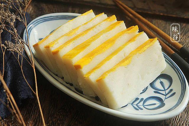 6、盖上盖子再蒸5分钟,表面蛋液熟了即可关火,把蒸好的鱼糕倒扣出来,切片直接食用非常鲜美。