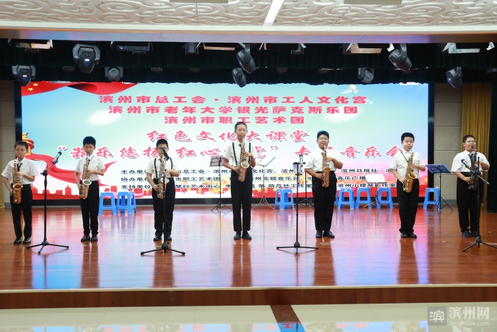 滨州日报/滨州网讯 7月8日,滨州市工人文化宫、市老年大学红色文化大课堂“器乐悠扬 红心向党”专场音乐会在市工人文化宫举行。