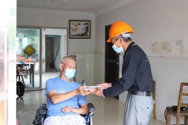 董阿塔年过八旬,因病行动不便,常年乘坐轮椅,子女也不在身边。每每上门送餐,龚小弟总是先替董阿塔将餐桌上的杂物移走,然后帮他把餐盒打开,再将清洗后的不锈钢勺递给老人。董阿塔高兴地说:“我自己做饭不方便,基本每天都吃他们送的饭。”