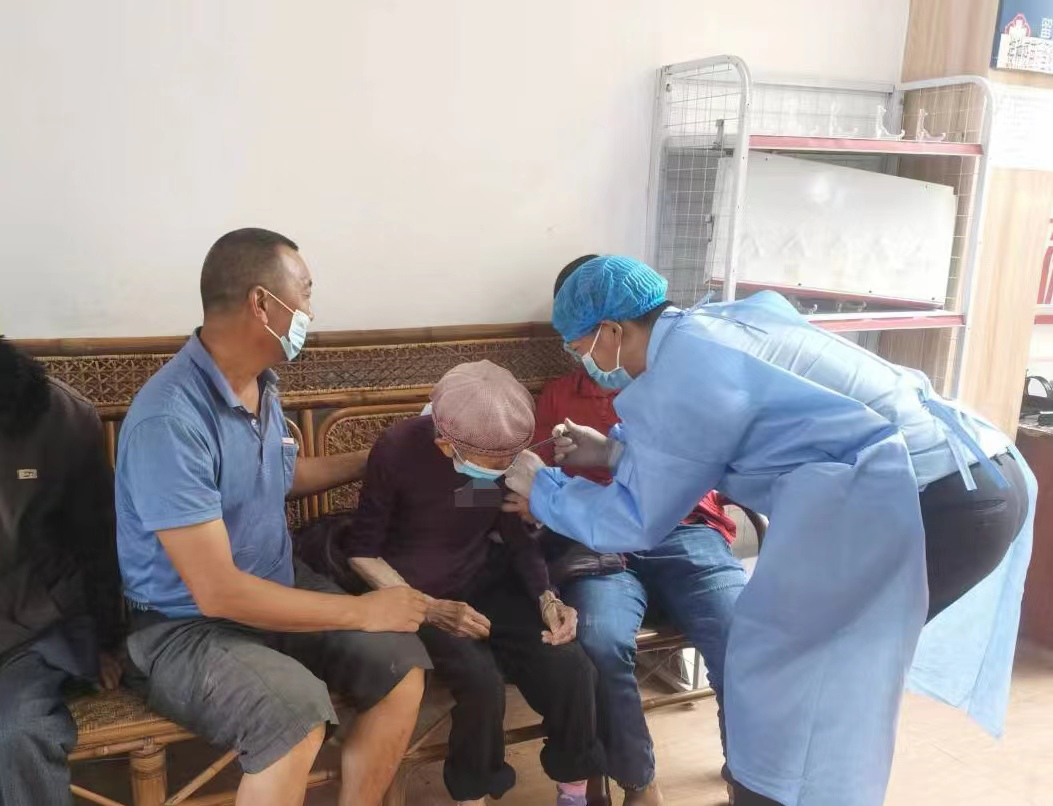 据悉,为全面筑牢防疫屏障,新华乡持续深入开展人员排查和广泛宣传,在入户走访中,工作人员了解到2名百岁老人家属的接种意愿后,新华乡政府和卫生院工作人员主动上门服务,详细了解情况。因两位百岁老人年事已高且行动不便,语言表达不清楚,工作人员与家属进行了耐心细致的座谈,全面详细地了解了她们的基本情况,同时为接种者进行了健康检查,经全面检查,2名百岁老人身体健康状况良好、稳定,可以接种疫苗。