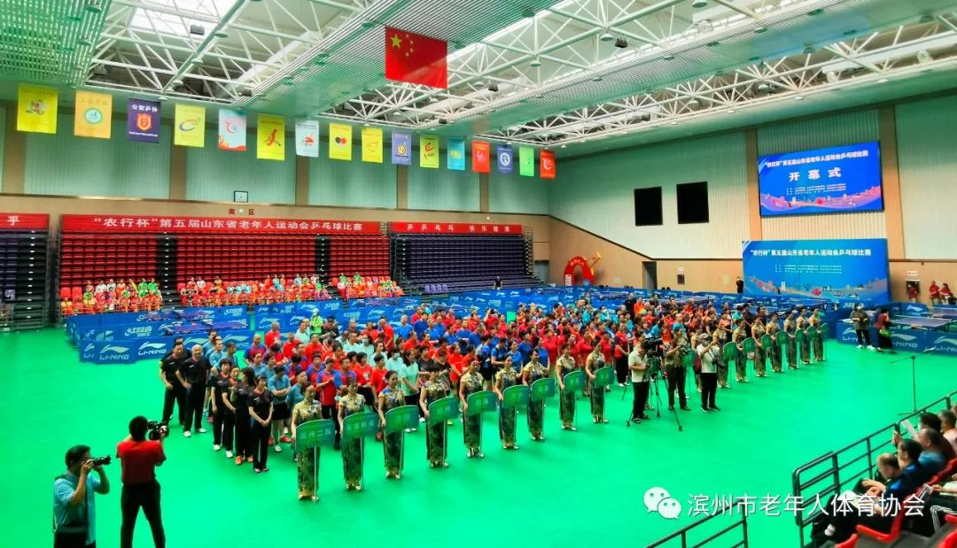 齐鲁网·闪电新闻7月28日讯 27日上午,由山东省体育局、山东省卫健委、山东省老年人体育协会主办,滨州市体育局、滨州市卫生健康委、滨州市老年体协承办的“农行杯”第五届山东省老年人运动会乒乓球比赛正式开幕。来自全省十六地市和省直机关、大企业的180余位乒乓界爱好者参赛。作为本届老运会的第一个项目,乒乓球比赛的顺利举办拉开了第五届山东省老年人运动会的帷幕。
