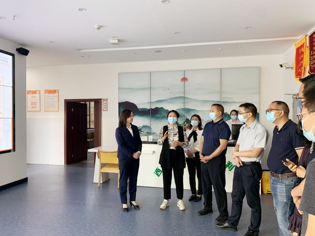 在我院院办王红红老师的带领下,区人大常会等一行领导对我院长者能力评估室、幸福老年食堂、多媒体区域、长者户外活动空间、室内环境样板间等各功能场所进行参观。