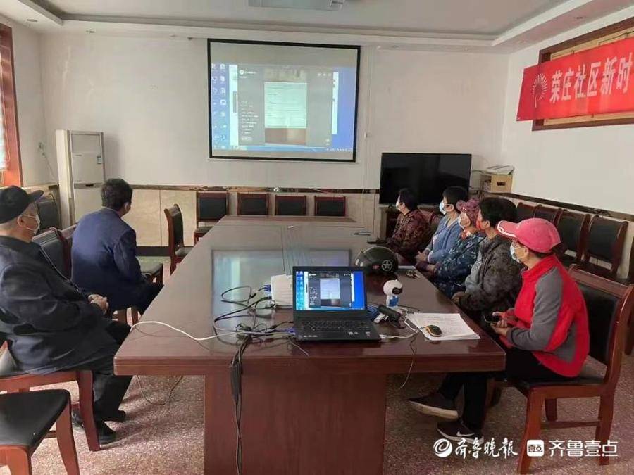 线下“社区投屏”,“魔方式”智慧助老更加立体化。线上直播进行的同时,各县市区积极组织社区老年大学分校(教学点)将直播内容投屏到电子黑板,线下组织老年群体集体收听收看。在德城区荣庄社区,直播教学的内容通过投影仪在大屏幕上实时播放,志愿者们在线下汇总问题,发送到评论区,与直播老师在线互动,现场答疑;在状元府社区,很多老年学员认真记录笔记,热情高涨,气氛热烈。