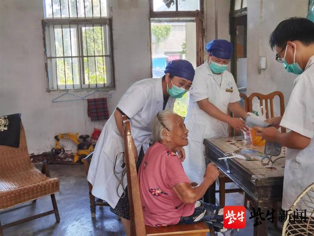 “我行动不便,医生特意来家里看望我,这么热的天,我十分感谢他们对我的关爱和照顾!”家住白兔镇官庄巷的96岁笪顺儿老人说。