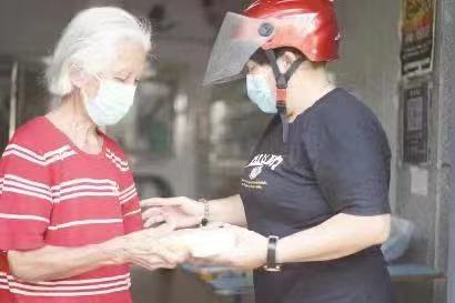 图说:送餐员们冒着高温,每天都准时将为老餐送到老人手中。芷江西路街道供图
