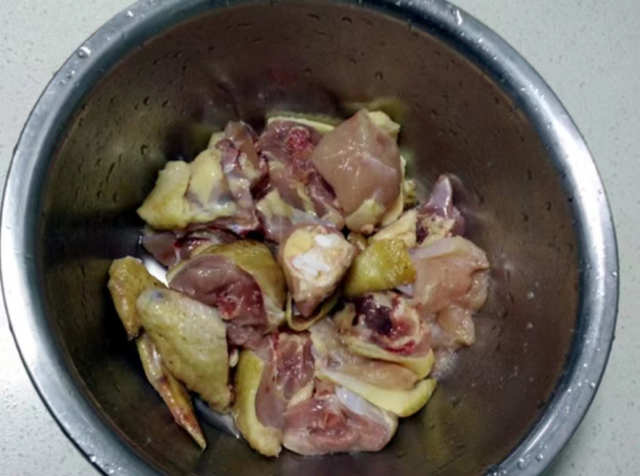 ①鸡肉处理干净,切成大小均匀的小块。