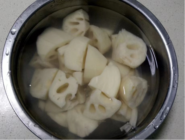 ③莲藕去皮洗净,切成大块;山药洗净泥土(也可削皮)切大块;大葱剥皮切成大段。