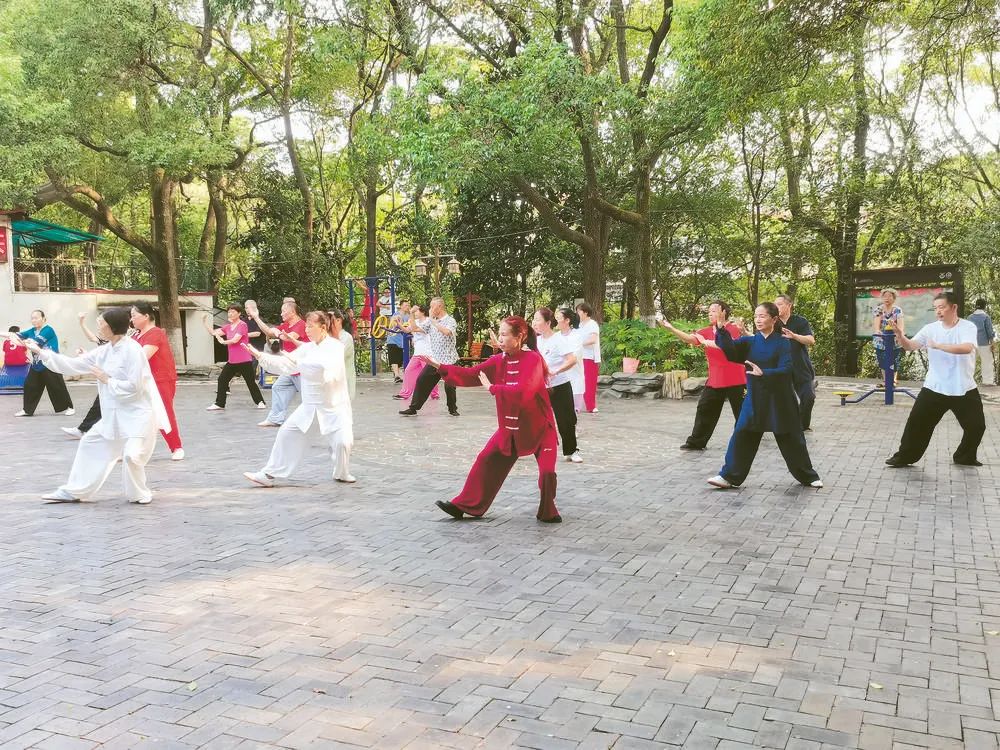 8月25日清晨,金鹗山公园凉风习习,李素丽如往常一样和队友们在公园的广场上练习太极拳,伴随着悠扬的音乐,一招一式,不一会儿,几人的额头上就渗出了密密麻麻的汗珠。