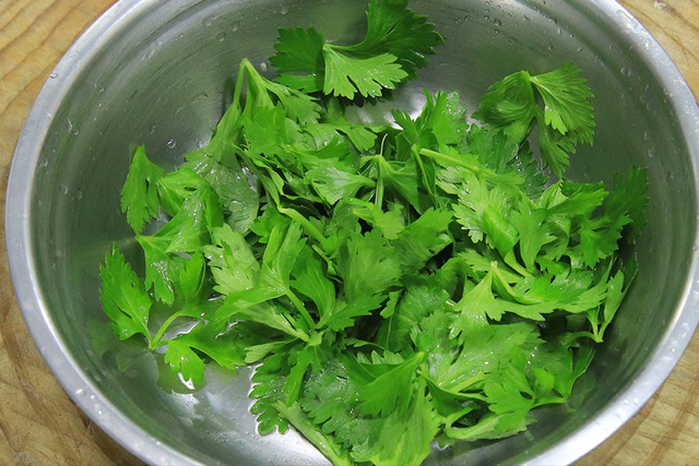 1.准备一把小米,放入清水中抓洗干净,浸泡10分钟,把小米泡开更容易煮熟。切点胡萝卜丁,再准备一小把鲜嫩的芹菜叶,切成碎末后备用。