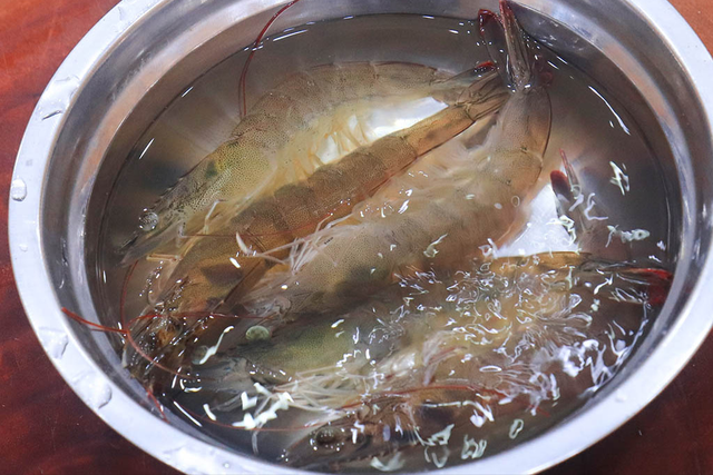 1.准备适量的大米,用清水淘洗几遍,沥干水分后放入冰箱中冷冻2小时。准备几只鲜虾,剪去虾须、虾腿,挑出虾线备用。
