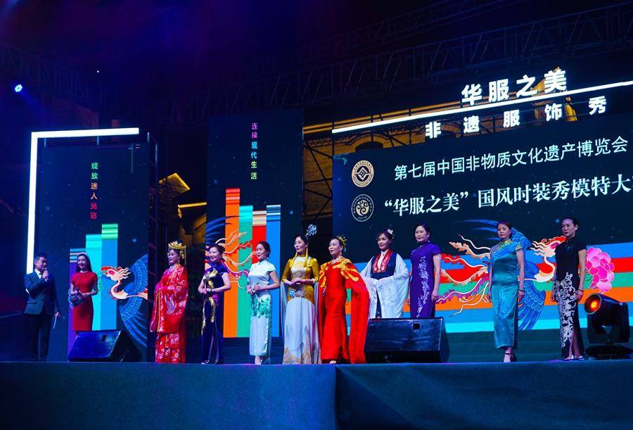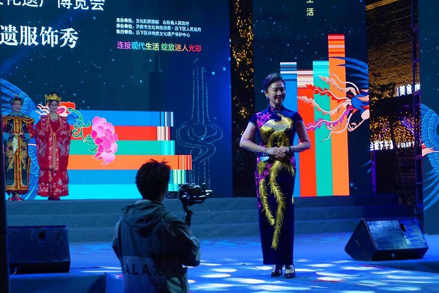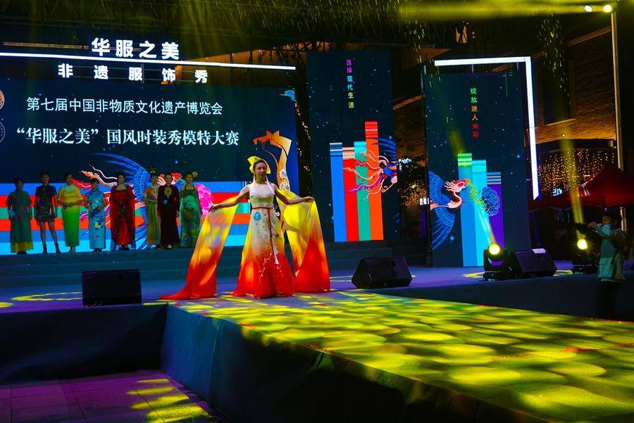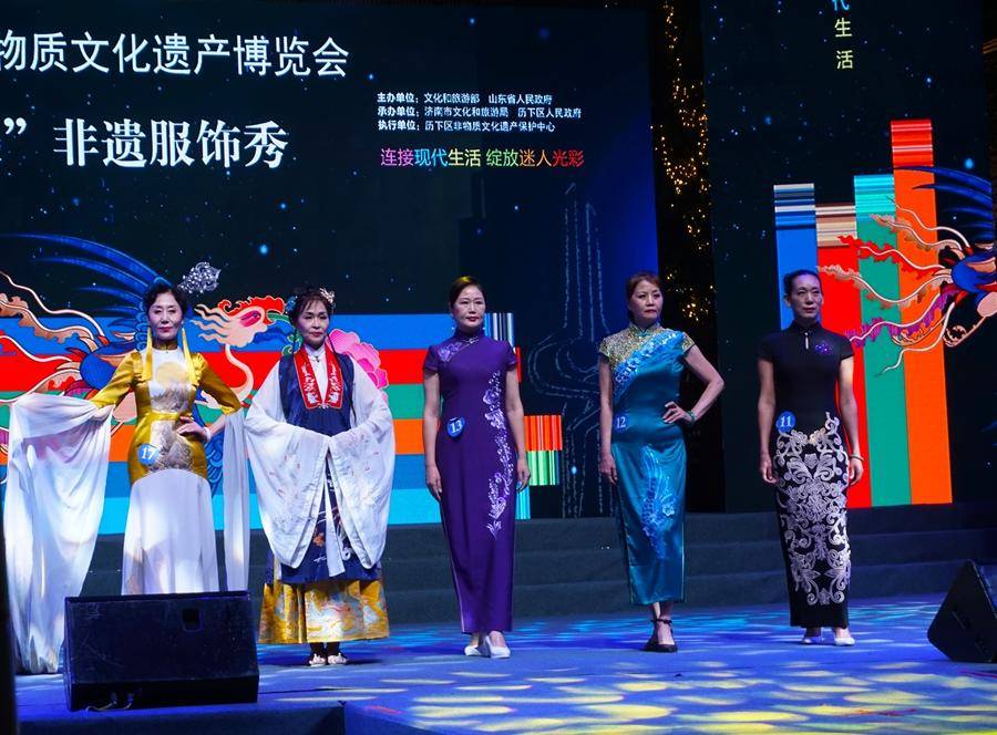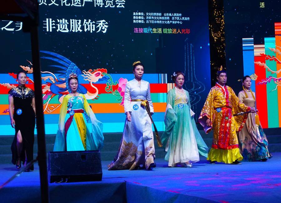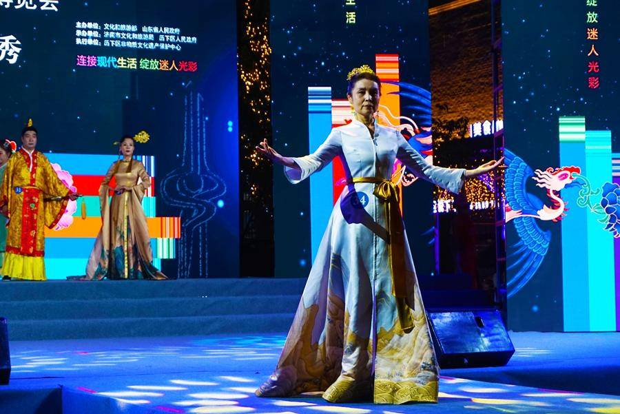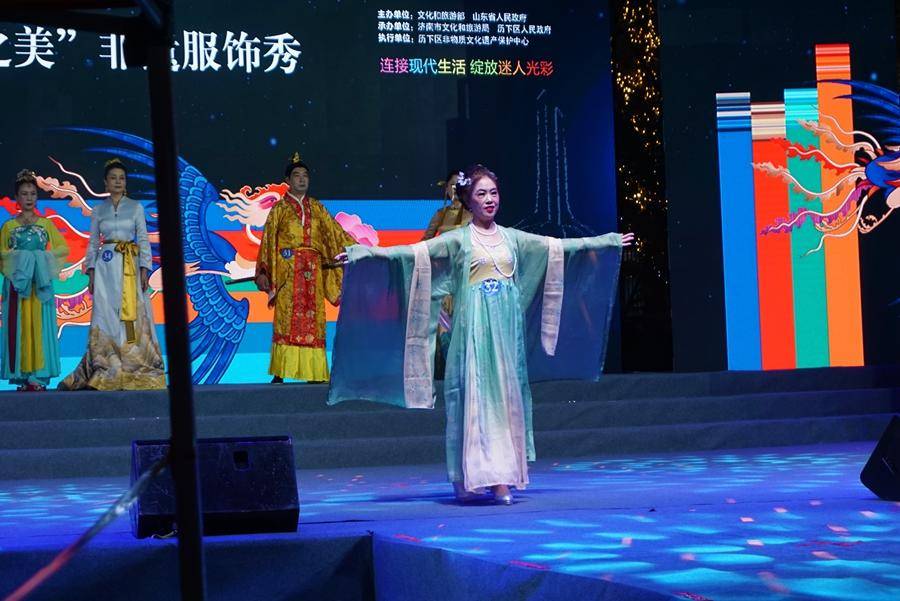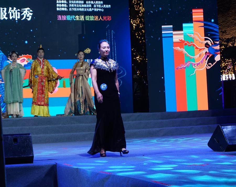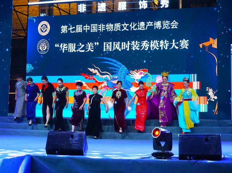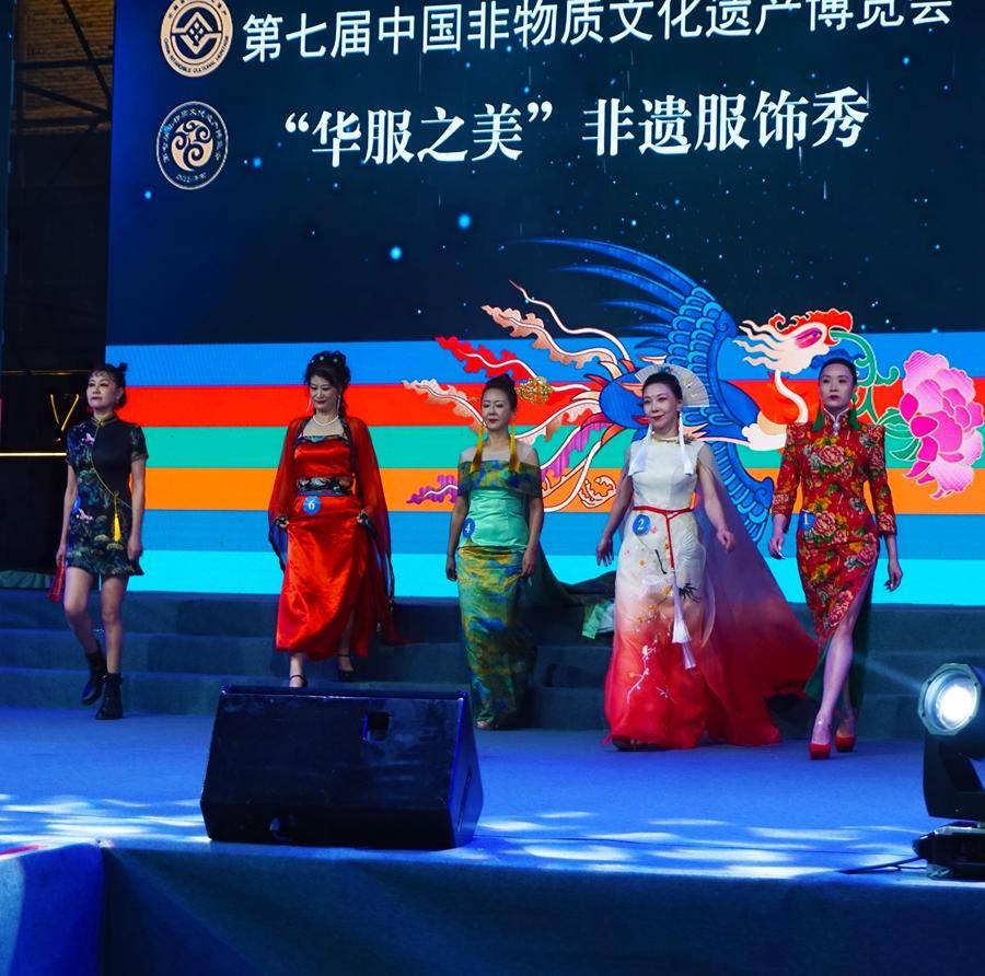 2022年8月24日--28日,第七届非遗博览会“华服之美”非遗服饰秀活动启动仪式在济南市历下区红尚坊柒坊巷中心广场举行。以“大美国韵 盛世华服”为主题的非遗服饰秀,为现场观众带来一场精美的视觉盛宴。身着华服的模特们伴随着悠扬的古典乐与现代混音,充分展示了苏绣和汉绣等非遗刺绣服饰的魅力。诠释了“连接现代生活,绽放迷人光彩”的活动主题,