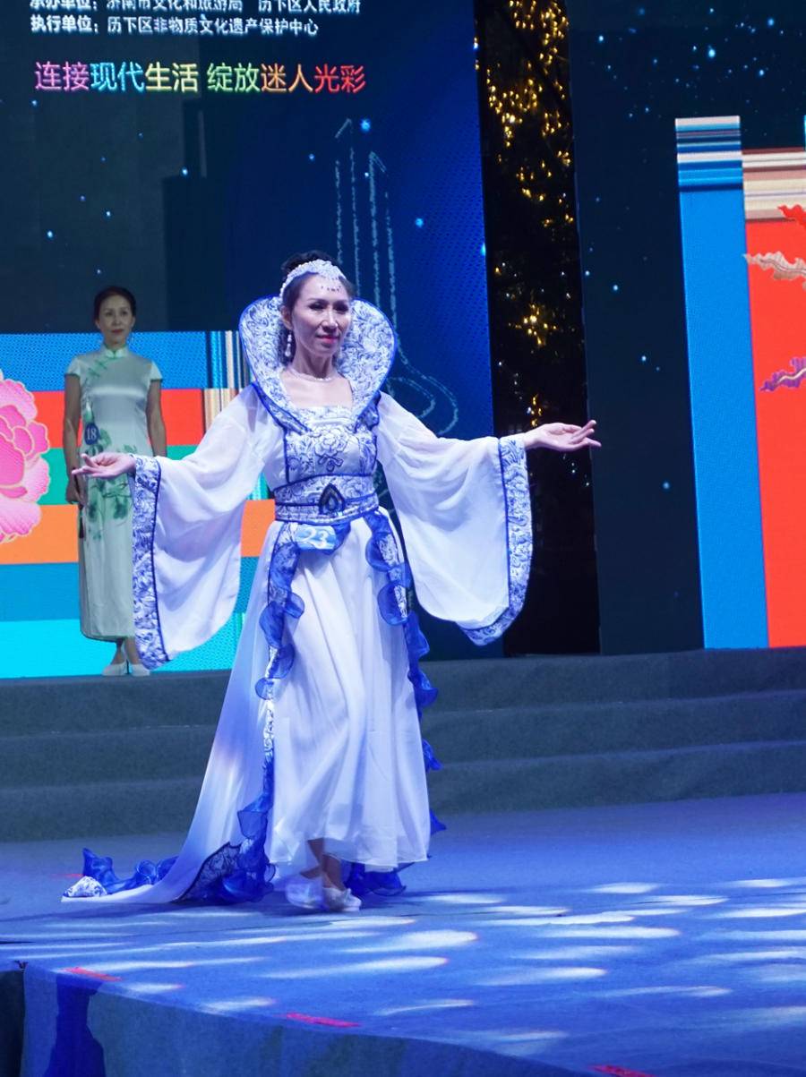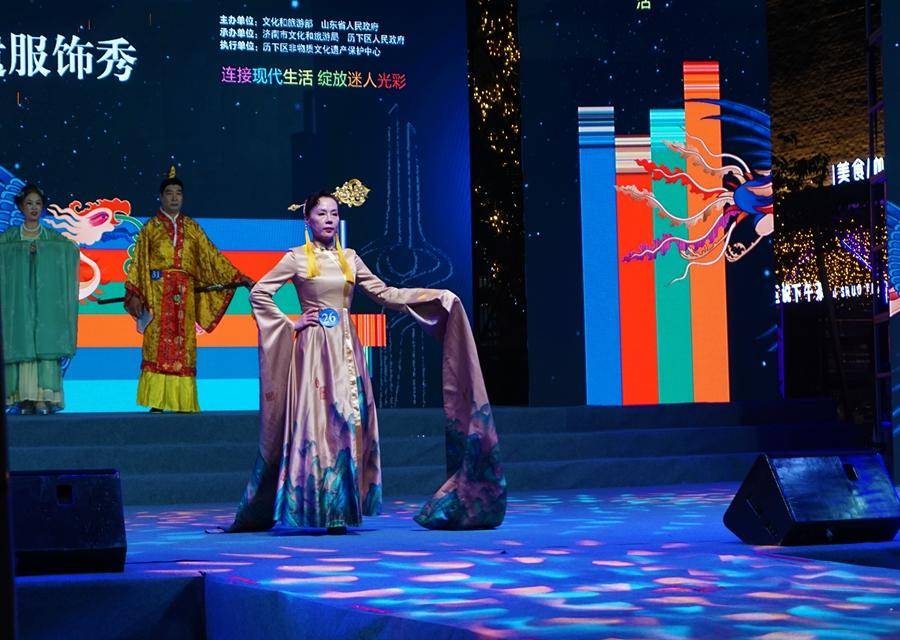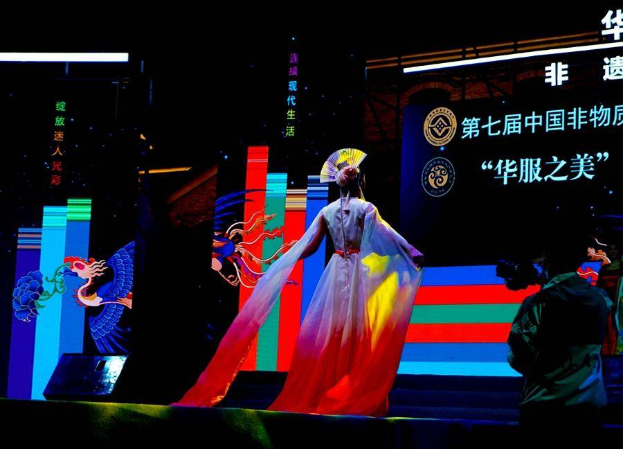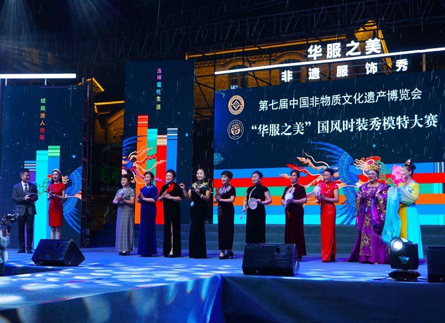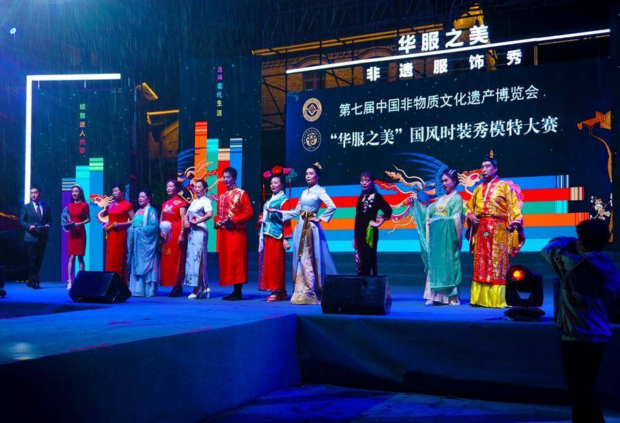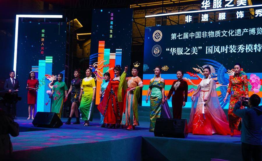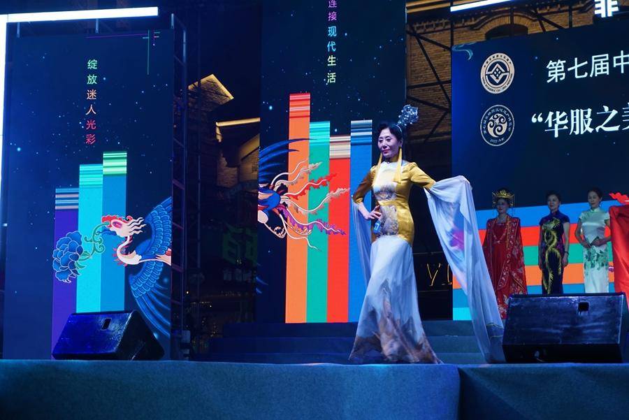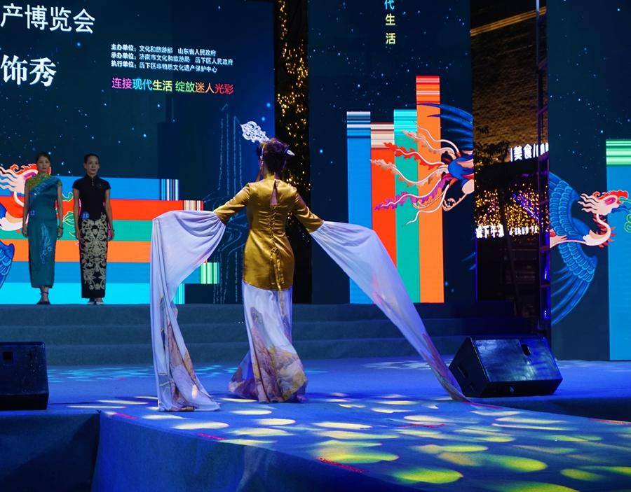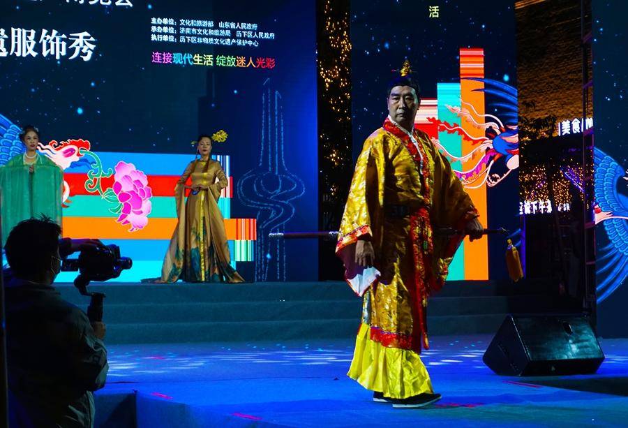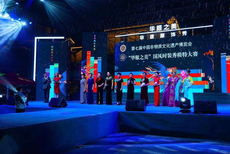 2022年8月24日--28日,第七届非遗博览会“华服之美”非遗服饰秀活动启动仪式在济南市历下区红尚坊柒坊巷中心广场举行。以“大美国韵 盛世华服”为主题的非遗服饰秀,为现场观众带来一场精美的视觉盛宴。身着华服的模特们伴随着悠扬的古典乐与现代混音,充分展示了苏绣和汉绣等非遗刺绣服饰的魅力。诠释了“连接现代生活,绽放迷人光彩”的活动主题,