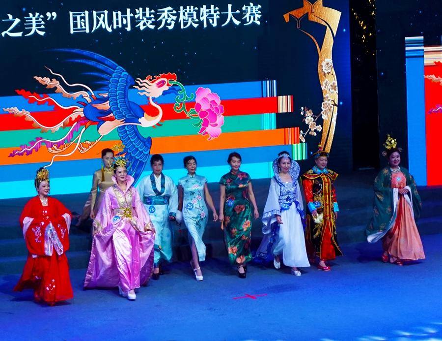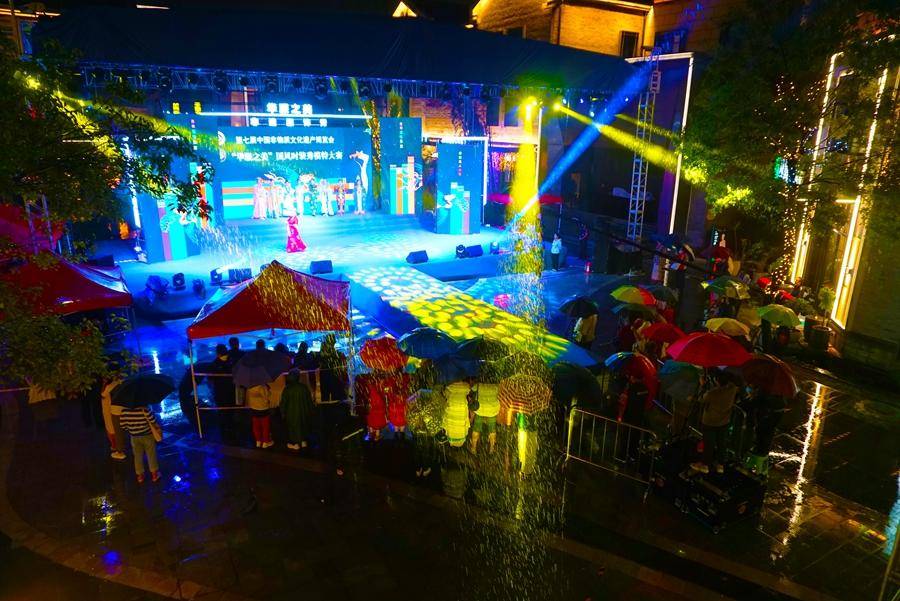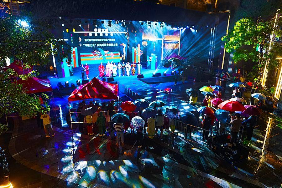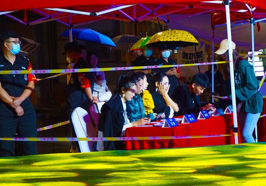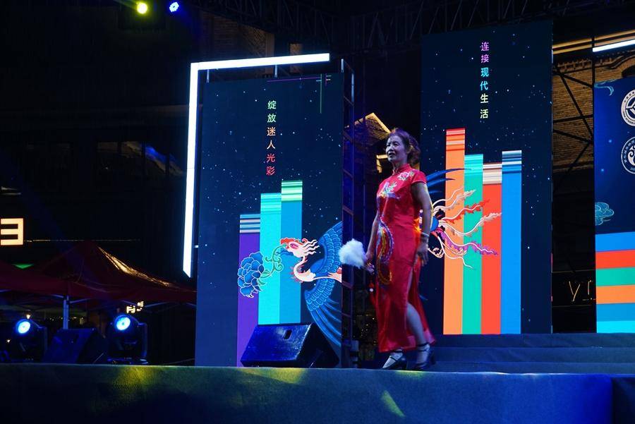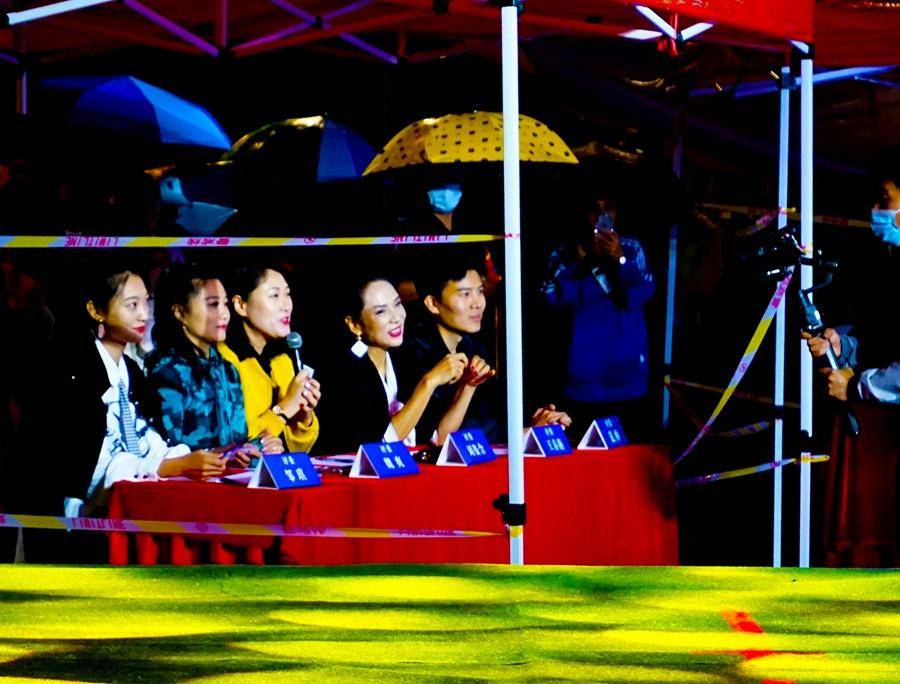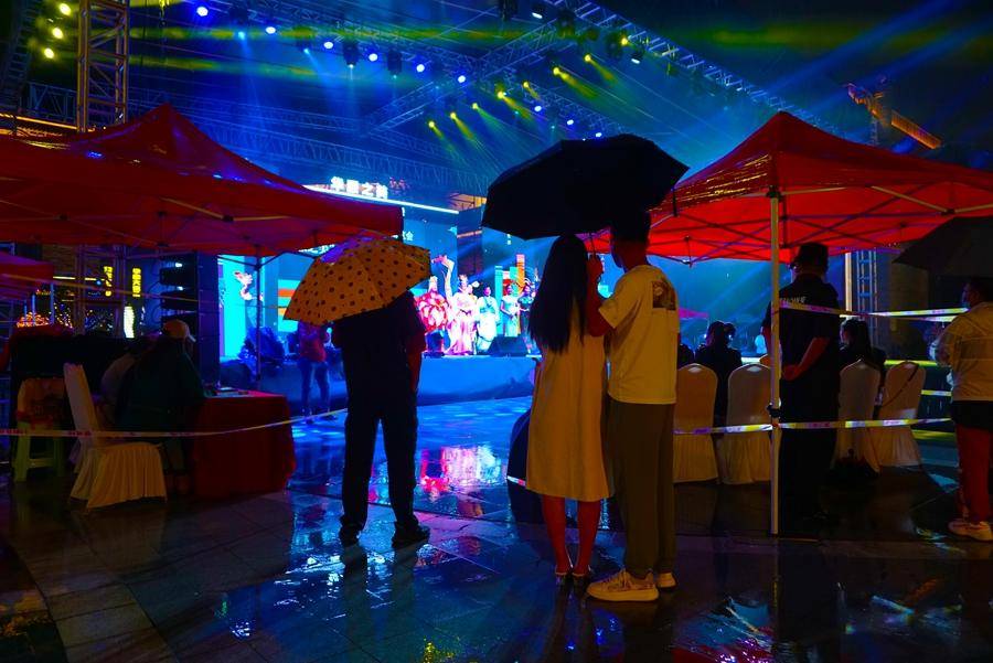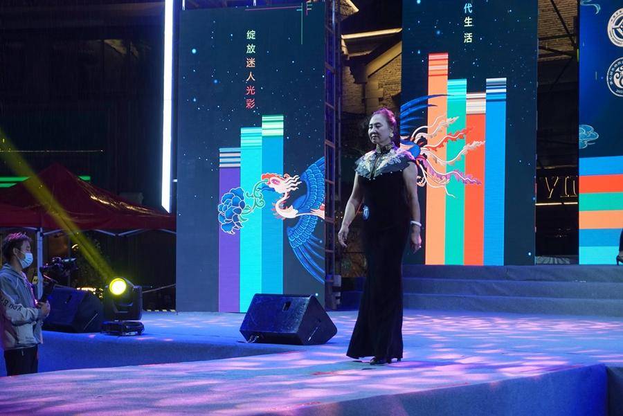 这天下午就开始下起了雨,至傍暮时分,绵绵霏雨仍然持续不停,活动照常举行。中老年服饰秀的模特们精神抖擞,观看者也是全然不顾,尽管来的观众少了许多。
