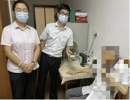 9月2日小雨纷纷,江副主任协同存单开户行行长顾晓彤冒雨前往疗养院进行上门见证。被见证客户年纪较大,腿脚不便,但是精神状态较好,对银行上门见证人员表示欢迎与感谢。江副主任与顾行长向客户存单所有人了解了客户需求,并向询问客户是否由于腿脚不便委托女儿来银行取款,待客户一一确认后银行员工与客户进行拍照见证。