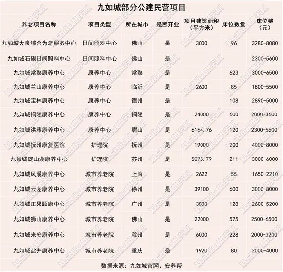 九如城集团有相当大比例的项目采取了公建民营的经营方式,与地方政府签约,接管已建成项目的改建,或由地方城投公司建成再接收运营。