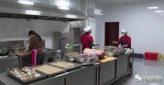 厨房里厨师们正忙碌的准备着中午菜肴,炖羊肉、酥鸡肉、红烧鱼……都是老年人喜欢吃的地方特色菜,热气蒸腾,菜香四溢。