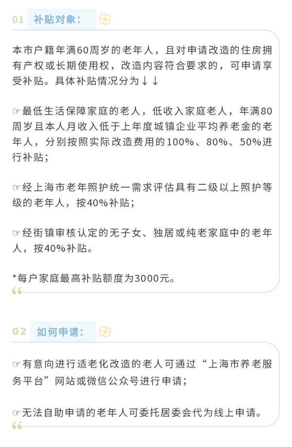 “这样的机会太难得了,改造过程也不需要我操心,太为我们着想了!”在居委干部的帮助下,最终王阿婆选择了3000元基础产品服务包。值得一提的是,因符合本区补贴政策条件,王阿婆还享受到了最高补贴额度3000元。