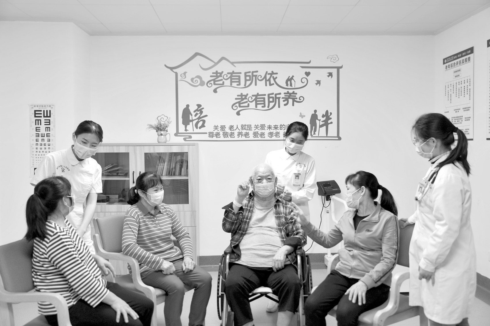南宁市第八人民医院医护人员细心陪伴住院老人,呵护老人的心理健康。 (唐承福 摄)