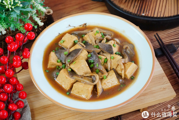 4、加入泡发的茶树菇,盖上锅盖焖煮25分钟,出锅前加入适量的盐和鸡精搅拌均匀即可。