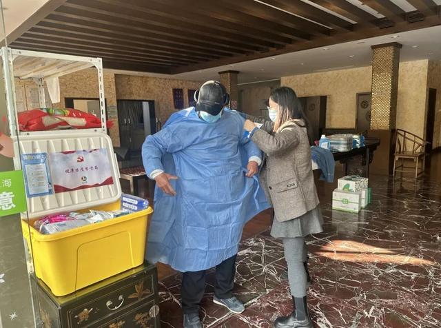 许多患有基础病的老人虽未感染新冠肺炎,但仍需定期前往医院复诊配药,为最大限度守护老年人的身体健康,特别是未感染老年人的健康安全,九里亭街道社区党群服务中心积极挖掘区域化党建资源,向街道社区服务办筹措口罩、防护服、隔离服、一次性手套等防疫物资,将“健康防疫百宝箱”放置在各级党群阵地的最显眼处,方便有需要的老年人随时取用。“感谢街道的暖心之举,让我去医院看病没有那么害怕了!”涞寅居民区一位老年人在穿上“健康防疫百宝箱”里的隔离服后说道。