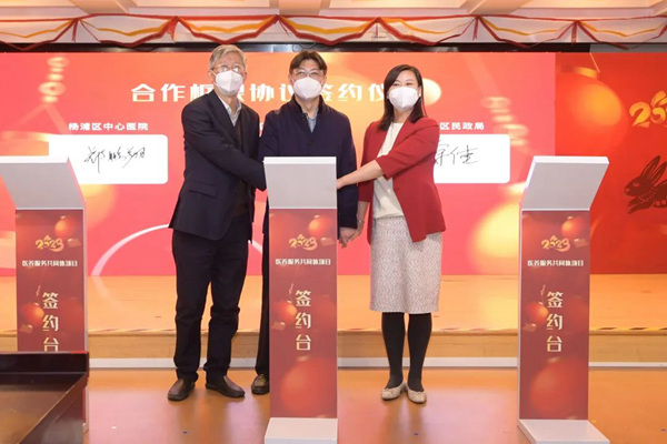 启动仪式上,杨浦区民政局、区卫健委及杨浦区中心医院在现场共同签署《杨浦区医养结合服务共同体项目合作框架协议》。全区12个街道社区卫生服务中心与养老机构代表在合作框架基础上,签订医养服务协议,共筑老年人健康安全屏障。根据协议内容,今后三方将通力合作,促进医疗及养老资源共享,实施养老机构老人分级分类救治,搭建住养老人就医转诊绿色通道,加快“互联网医院+养老机构”建设,持续提升杨浦区养老机构医养结合能力水平。