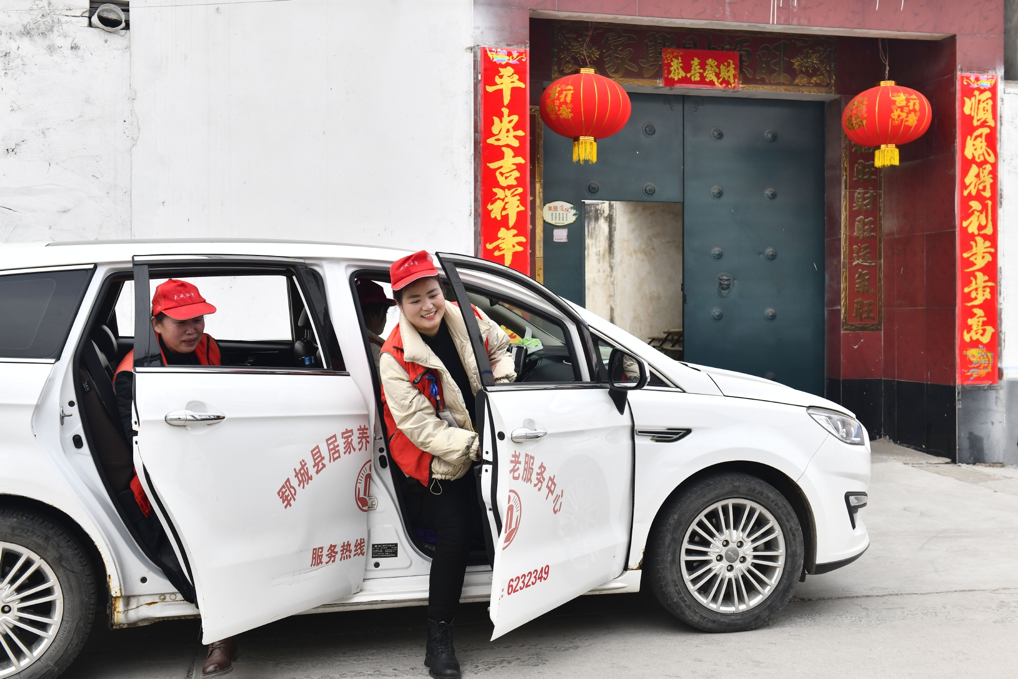 2月12日,在郓城县郓州街道王沙湾村,郓城县居家养老服务中心的工作人员前往魏金兰家提供养老服务。 新华社记者 郭绪雷摄