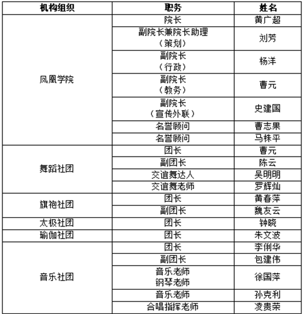 凤凰学院第一届院长团及各社团负责人、老师、达人名单
