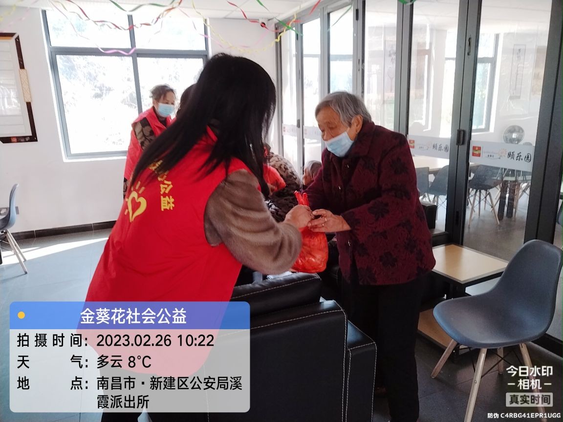 为积极弘扬雷锋精神,践行社会主义核心价值观,传承中华民族尊老爱幼的优良传统美德,在第60个“学雷锋纪念日”即将到来之际,2023年2月26日,江西省南昌市“秀丽阳光爱心公益团队”志愿者张秀丽,余洋,徐文,魏斯丽,刘毅,余荣干,以及小小志愿者余皓涵等走进南昌市新建区金葵花溪霞镇养老院,送温暖,献爱心,看望五保户老人,志愿者与五保户老人进行亲切地交谈,详细询问老人的生活情况和身体状况,认真聆听老人的心声。