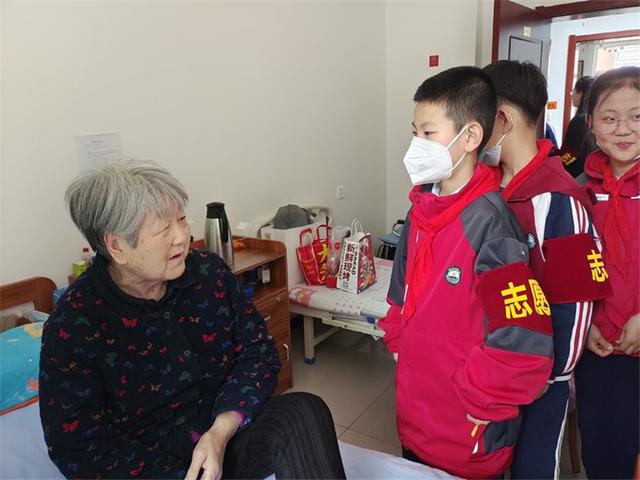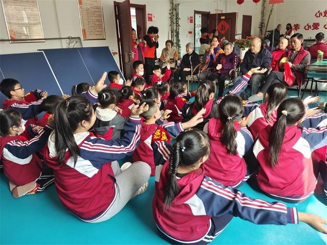 孩子们的到来为养老院带来了一片欢声笑语,他们围在老人身边,一起谈天说地。