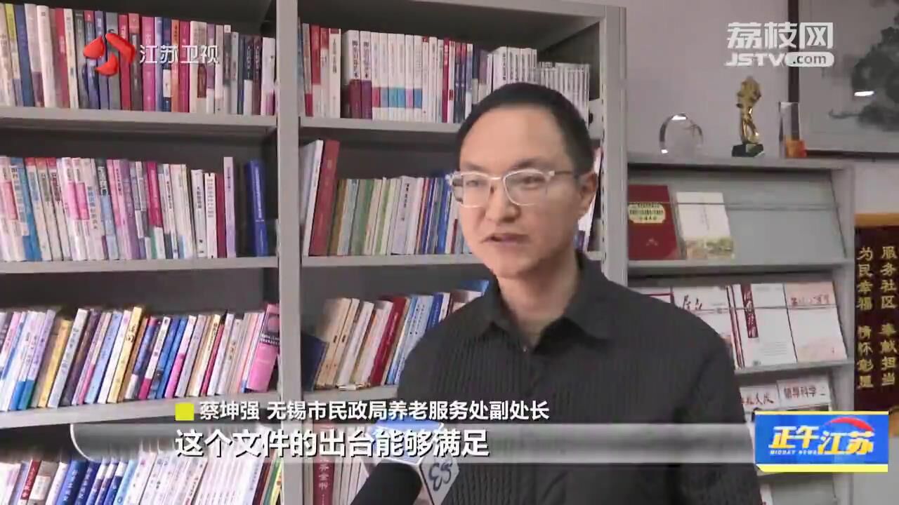无锡市民政局养老服务处副处长蔡坤强说:“这个文件的出台能够满足老年人在精神和物质两方面的需求,能够提供多方面的老人需要的养老产品还有养老服务。”
