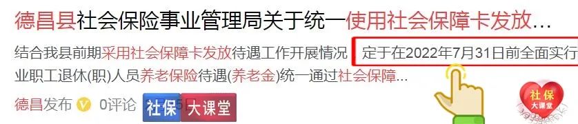 首先有四川凉山自治州下辖的的“德昌县”,人社部门明确要求退休人员要在2022年7月31日之前,全面使用社保卡来放放养老金——且要及时到原办理领取养老金的社保经办机构办理更换养老金发放账号手续,以便养老金能够正常发放到位。