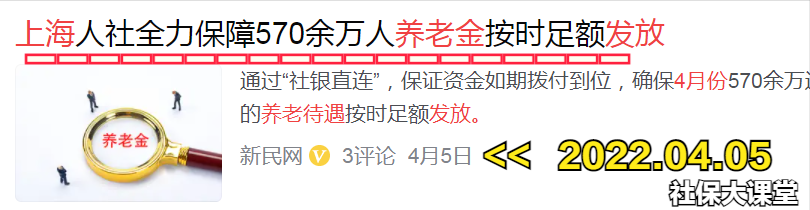然后还有上海市,近期不少上海的退休人员留言,说对于四月份养老金能否正常发放心里没底——但是现在大家可以吃下定心丸:上海已经明确说明570多万退休人员的养老金,4月份会正常发放。