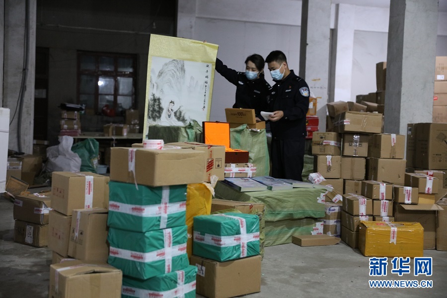 民警清点涉案的假冒收藏品。新华网发(资料图)