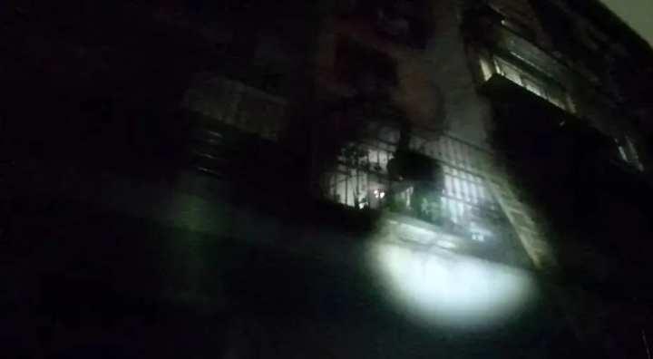 夜已深,阴雨绵绵,视线昏暗,也不方便挨家挨户敲门打扰。队员们循声搜寻,联动120及消防,初步判断老奶奶的位置很可能在一处2楼阳台上。