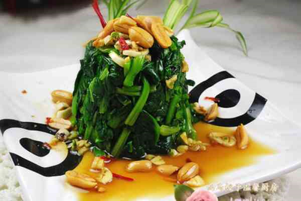 主料;菠菜 300克,麻辣花生 50克辅料;大蒜 3粒,六月鲜酱油适量,香油 适量,盐 2克,鸡精 2克,香醋 适量做法;