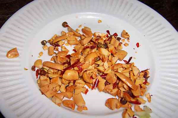 麻辣花生放入盘中