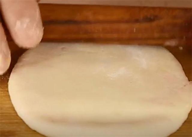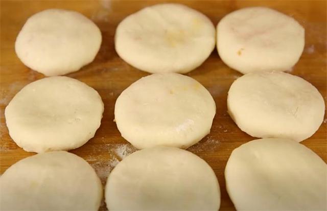 5.用手揉圆压扁,再用擀面杖将面饼擀成比较薄的面皮。