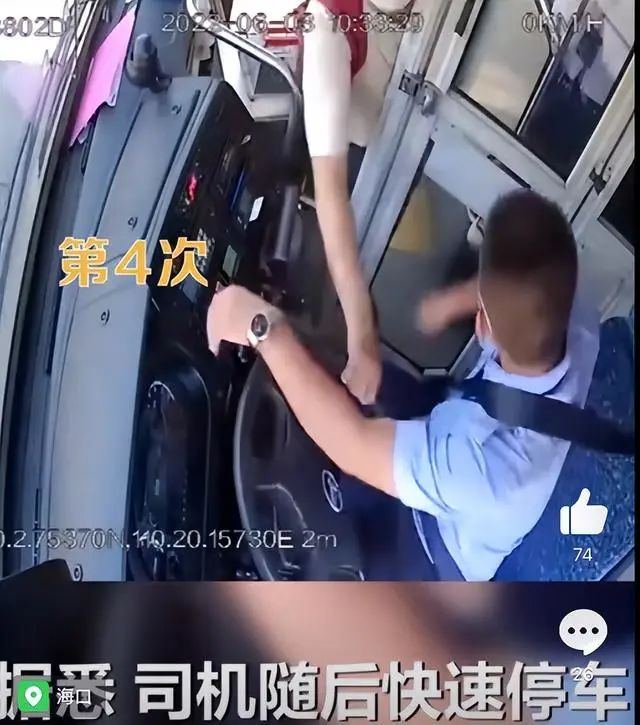据了解,3日上午10时30分左右,邱师傅驾驶公交车前往海口火车站,行驶到水巷口站时,一名穿红马甲的七旬老人上车。车辆启动行驶后不久,老人在车厢内坐下时才发现其朋友没有一同上车,便大声呵斥邱师傅停车等待,“由于车辆已经抵达下一站钟楼,且在水巷口站时,确实没有看到其他乘客要求上车。”邱师傅耐心向老人解释,况且现在车辆已经到了下一站,按行车规定是不可能长时间等候乘客的。这时老人十分生气,来到驾驶座旁与邱师傅理论:“我朋友去拿口罩了,你怎么能把车开走?”邱师傅见老人无理取闹,由于还要行车,就劝慰老人赶紧坐下,后面还有车辆可以乘坐,车内其他乘客也纷纷让老人回座坐好。