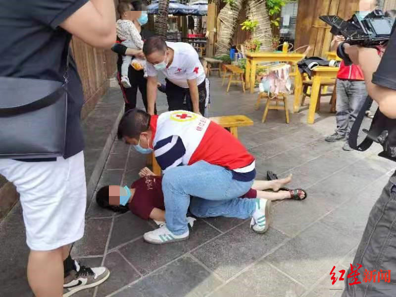 5月20日上午9点50分左右,在成都锦江区劼人路“东门市井”商业区,一名中年女性突然昏厥倒地。恰好,数十名红十字志愿者正准备参加成德眉资红十字志愿者服务联盟成立大会启动仪式。听到呼救声的锦江区红十字城市救援队队长芦飞,以最快的速度赶到现场进行急救,其他志愿者则拨打了120急救电话。