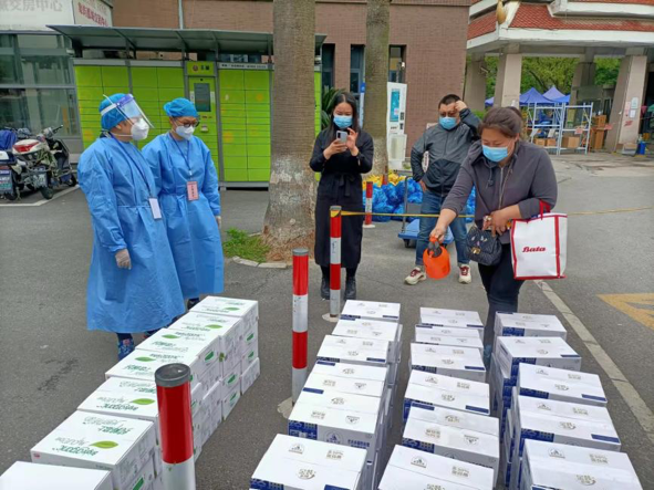4月30日,小区降为管控区,如何有效避免人群聚集取货、落实外来物资消杀成为当期工作重点。