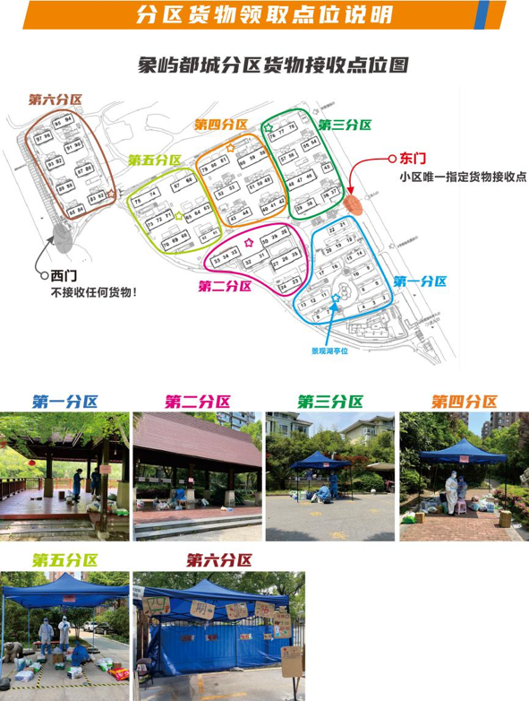 通过讨论及沟通,小区物资的领取方式采用划片区管理。首先,将小区划为6个区域,每各区域设置1个货物领取点位,居民将在楼栋所在区域点位领取物资。其次,小区设立唯一一个物资接收点,所有抵达的物资都将进行消杀、静置,司机抗原检测阴性后,再由志愿者配合物业安保团队进行分拣,最后驳运到小区6个货物点位。同时设立了团购物品监督组,招募小区内从事食品行业的热心人士,配合物业进行团购组织资质审核及外来物资的验收工作。
